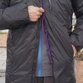 ◆ジッパー式のハンドポケットと左胸ポケット、内側にドロップイン型ポケット◆本体を収納するスタッフサック付き