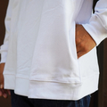 適度な厚みのミドルウェイト素材を使用し、程良いルーズシルエットで単品着用から重ね着まで幅広くスタイリングが楽しめる一着。