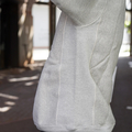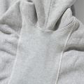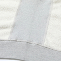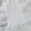 身頃の生地を横使いし、サイドにリブパネルを採用したホリゾンタルニッティング仕様で、着丈の縮み防止や伸縮性を意識した構造。