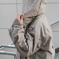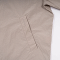 素材には、軽量撥水の裏地なしナイロン生地を採用。非常に軽く、イージーケアにも優れているため、日常のお手入れも簡単です。取り外し可能なフードや裾のドローコードを搭載し、シーンに合わせてシルエットの調整が可能。その軽快さと機能性から、ハイキングや自転車などのアウトドアでも存分に活用いただける一着です。