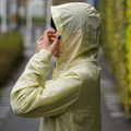 悪天候に対するプロテクションを提供し、激しいアクティビティをはじめどこへでも携帯できるリサイクル・ナイロン100%のフード付きジャケット。