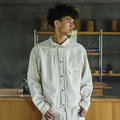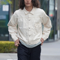 1930年代から50年代の「Type I」ジャケットをベースにデザインされた、クラシックな一着。生地には、旧式のシャトル織機で丁寧に織り上げた生成りのセルビッジデニムを使用しています。力強く、味わい深い風合いが特徴で、着込むほどに独自の経年変化を楽しめます。縫製にはアメリカ製のヴィンテージユニオンスペシャルのミシンを使用し、細部まで当時の仕様を忠実に再現。シルエットも1930〜40年代のオリジナルに基づき、過度なアレンジを加えることなく当時の雰囲気をそのまま現代に蘇らせました。クラフトマンシップと歴史への敬意が詰まった、日本製の逸品です。
