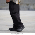 お尻周りにはゆとりがありながら裾に掛けてややテーパードさせたセミバルキーシルエットで、ハンマーループやツールポケット等のワークパンツならではのディティールを踏襲。